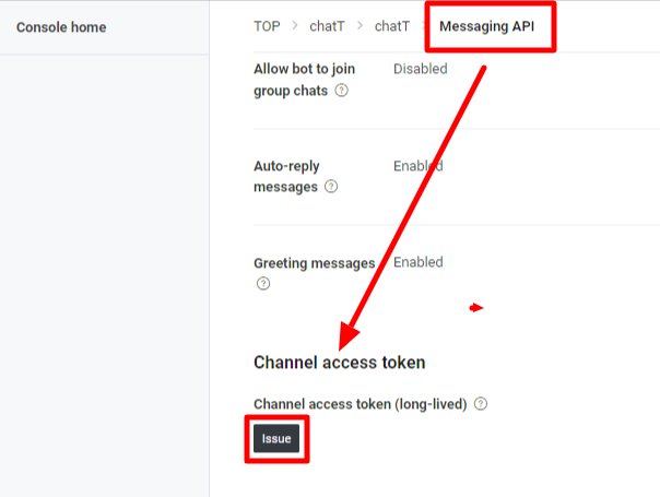 Messaging APIタブをクリックし、画面最下部の Issue ボタンをクリックします。