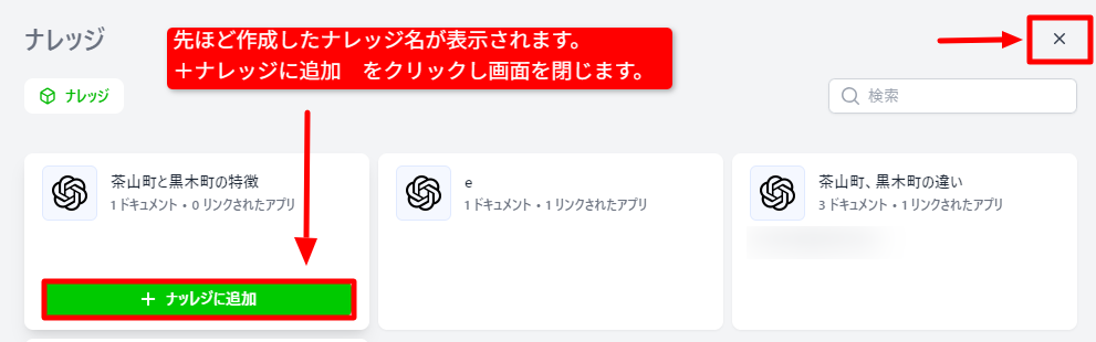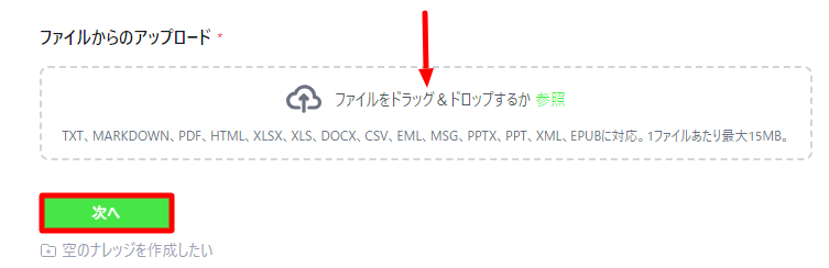 ナレッジの作成とファイルのアップロードが完了しました。