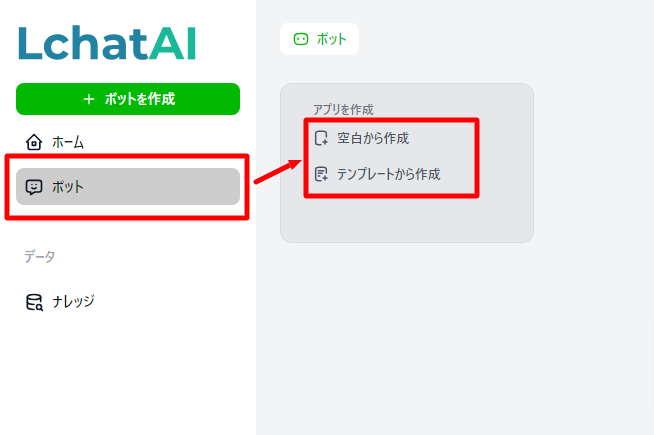LchatAIへログインしボット画面を開きます。