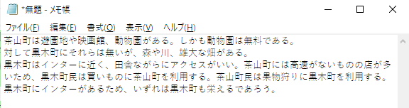 今回は例として架空の町を比較するテキストを用意しました。(特徴をメモ帳に保存したものです)