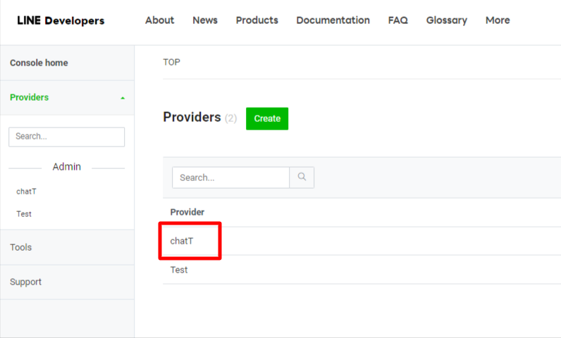 先ほどLINE公式アカウント側で作成したプロバイダが確認できます。