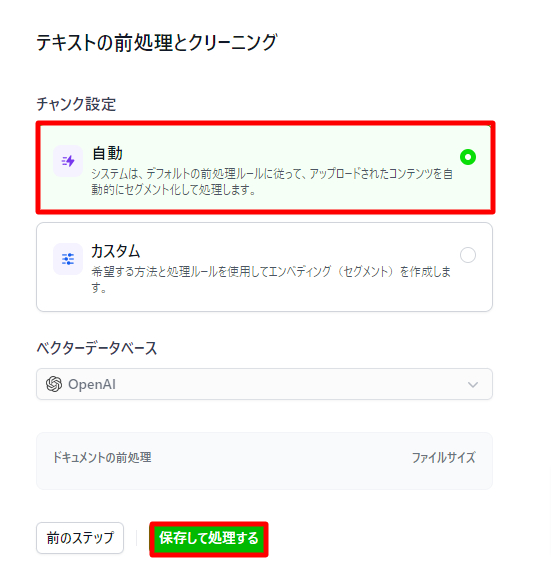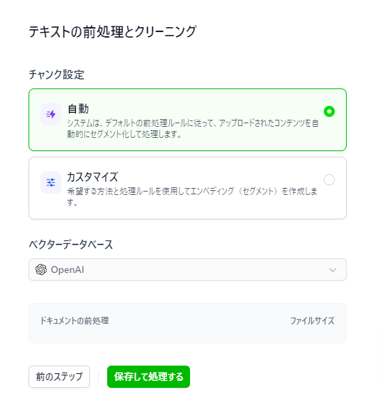 アップロードしたファイルの前処理・クリーニング方法を選択します。