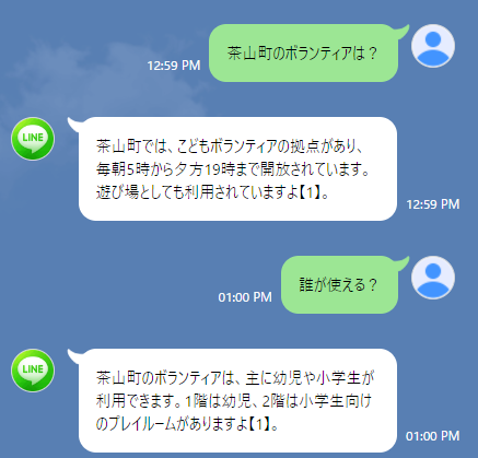 という文章だけ登録します。するとAIは一般常識に加え、架空の公民館について答えられるようになりました。下記のような回答ができるようになります。
