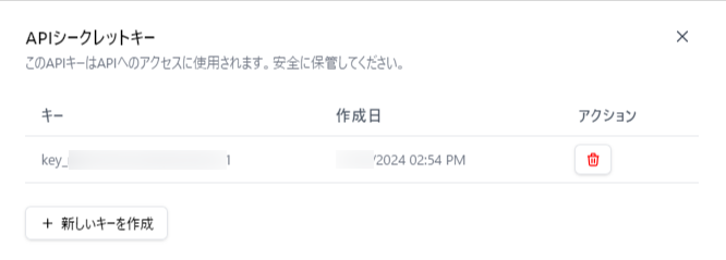 シークレットキー一覧画面が表示されます。