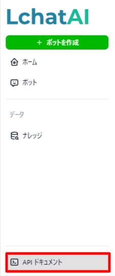 メニューよりAPIドキュメントを選択します。