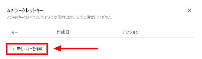 +新しいキーを作成 ボタンをクリックします。