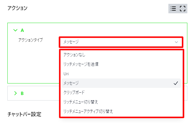 リッチメッセージの指示
