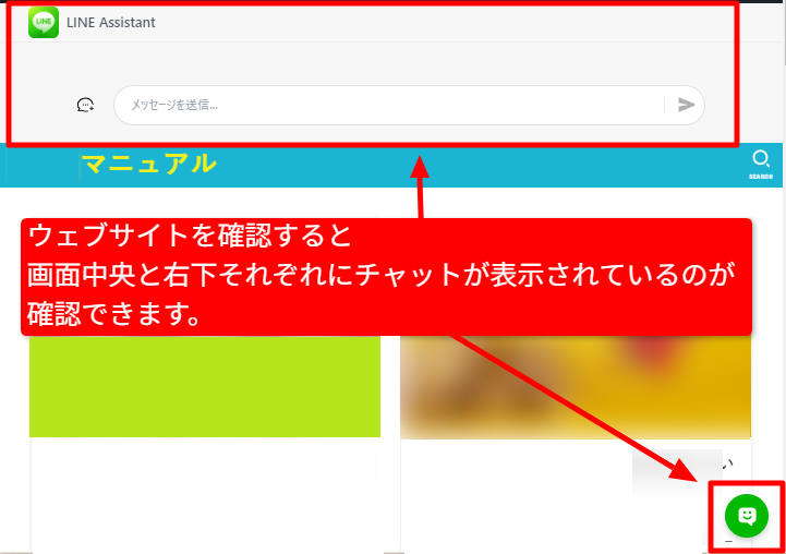 するとHPの画面中央・右下へチャットが表示されるようになります。