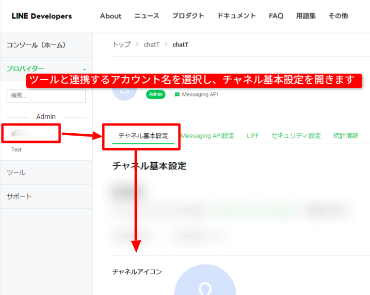 @channelは公式LINEアカウント名