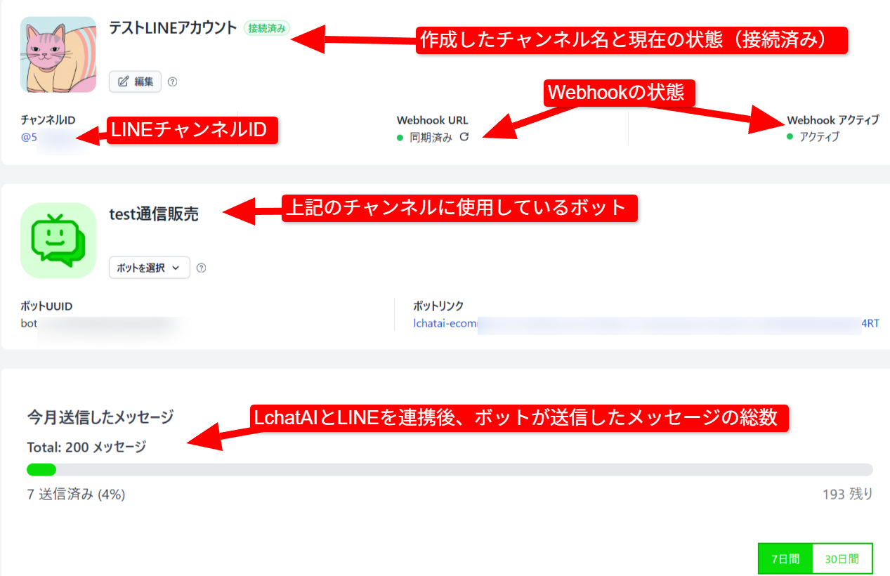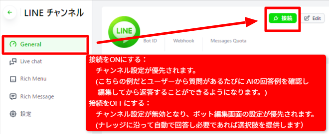 - LINEと連携してLINE上でボットを使用するチャンネル