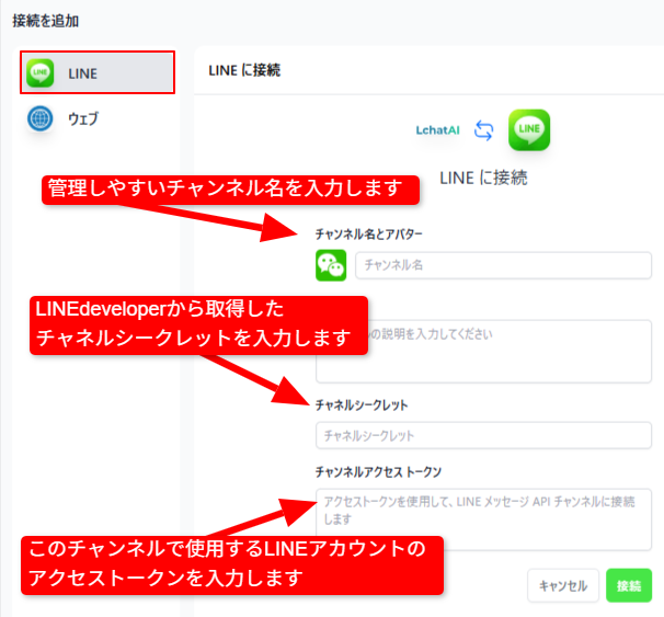※LINEを使用せずWebと接続する場合はこちらをご参照下さい。