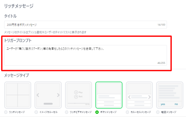 私はチャットボットの「リッチメッセージの指示(全体ルール)」に入力する
