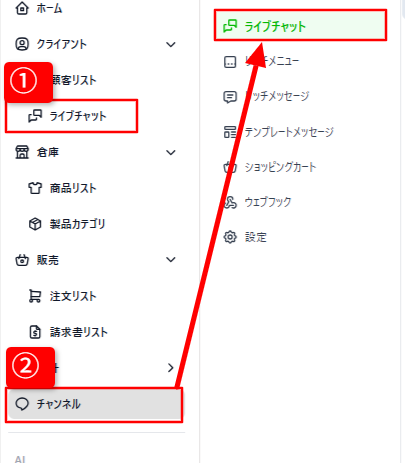 左メニュー≫ライブチャット