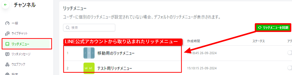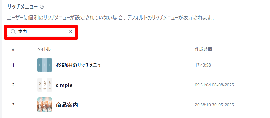 ・リッチメニューの表示・確認