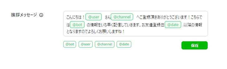 挨拶メッセージ設定欄へ挨拶を入力し保存します。