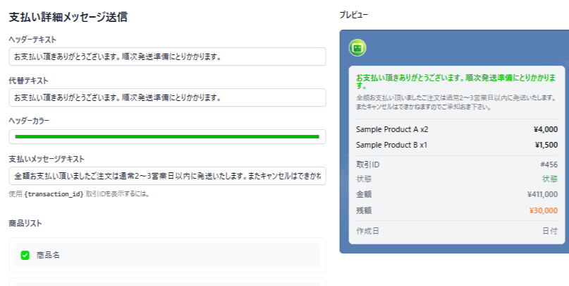 こちらをONにすると、LINEへ「商品を見たい」という問い合わせがあるとボットは商品リストにある商品情報をLINEユーザーへ提供します。
