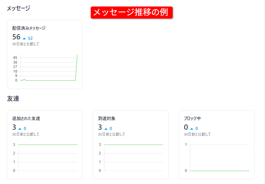 連携後から現在まで顧客とやり取りしたメッセージの推移などをご確認いただけます。