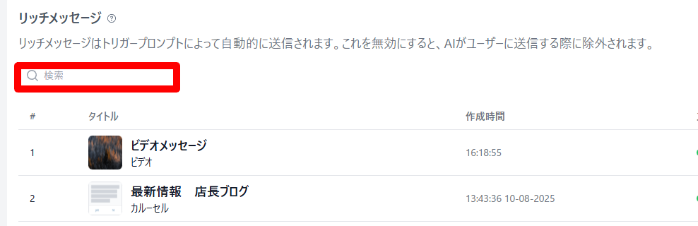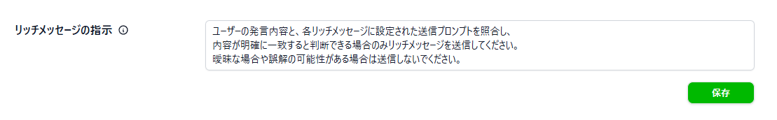 「こういう質問がきたらこのリッチメッセージを送れ」と具体的に指示するのではなく、あくまで