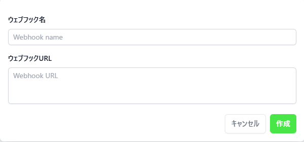 任意のウェブフック名と紐づけ先URL(通知を送りたい先のURL(Slack、社内システムなど))を入力し、作成ボタンをクリックします。