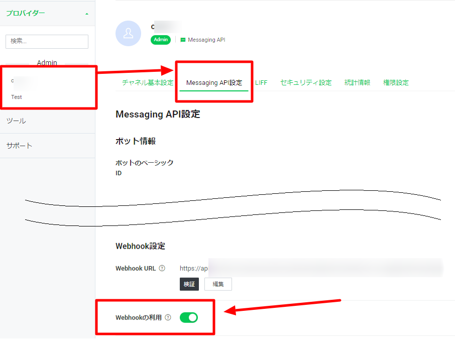 こちらではボットを使用するLINEアカウントの連携・設定を行います。