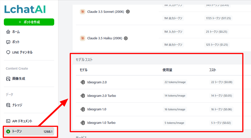 上記のトークン画面を下にスクロールするとIdeogramのトークン消費コストもご確認頂けます。