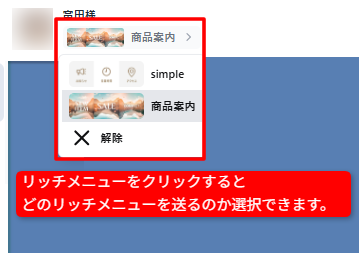 顧客名をクリックすると画面中央からリッチメニューを選択できます。