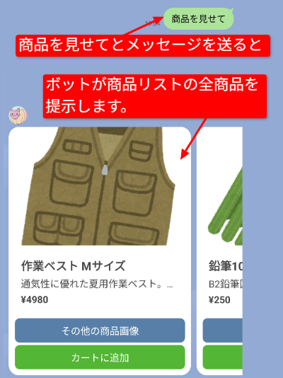 商品案内というリッチメニューを富田様へ送信しているのが分かります。
