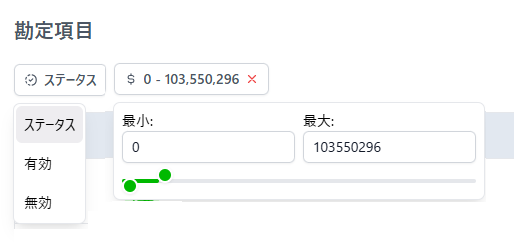 ステータス:ステータスの有効・無効で絞り込みを切り替えます。