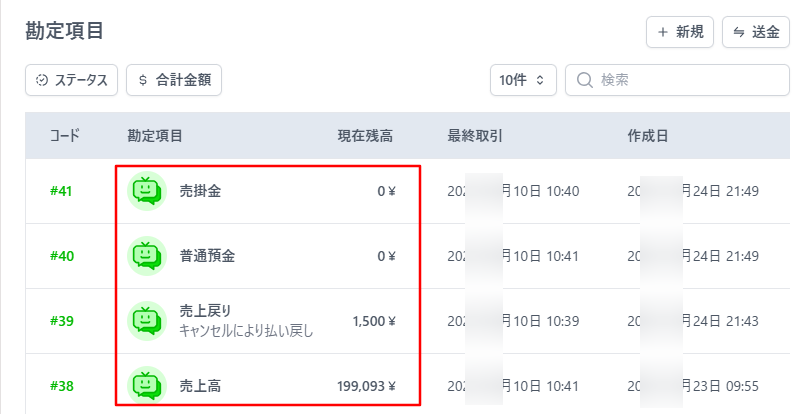 勘定科目が作成されました。