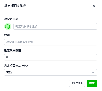 こちらでは予め勘定科目を作成し、入出金登録時に選択できるよう準備をしておきます。