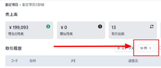 勘定科目履歴の表示件数を変更するには画面右上から行います。