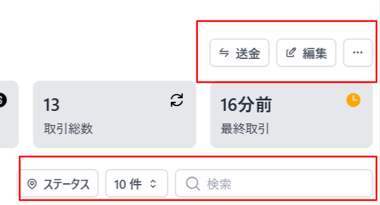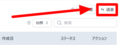 画面右上から送金ボタンをクリックします。