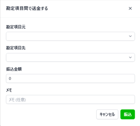 - 勘定科目画面から他の勘定科目へ送金を行う。