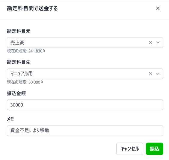 勘定科目間で送金する