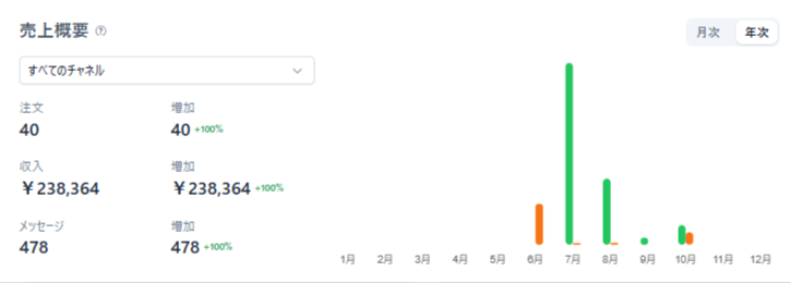 全てのチャンネルの注文・収入合計数といった具合に表示を変更できます。