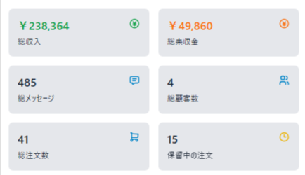 総収入…全ての収入額の合計(請求書画面にて支払い登録を行った金額の合計)
