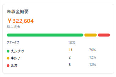 請求書を発行したものの顧客が未払いの注文はオレンジで表されます